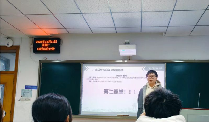 从评奖方面,我校严格考察学生的思想道德,除了国家奖学金、国家励志奖学金等政府奖学金外,还为成绩优异、其他实践活动方面表现突出的同学,设置了文澜奖学金、优秀学生奖学金等校设奖学金与若干外设奖学金,帮助、激励学生们不断进取、自强不息。从管理办法方面,何强老师强调为贯彻国家教育方针,维护学校正常的教学秩序,保障学生的合法权益,学生应自觉遵守校规校纪,特别是寝室相关的规则。