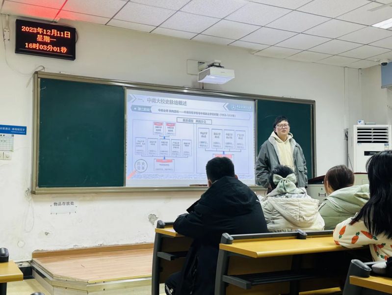 一仰高堂——认识学校。会议开始,何强老师带领同学回顾中南大的光辉校史。1948年,中原大学在革命呐喊声中创立,先辈伟人在学习和生产劳动相结合的简陋环境中,为中南大染上浓厚的红色底蕴。