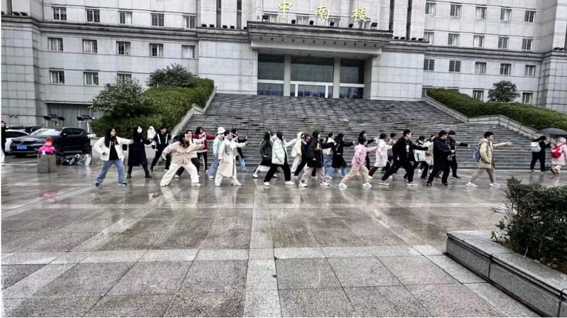 青春爱运动,健康强中国。生命不息,运动不止。同学们在中南楼前整齐地打着太极拳,在此过程中,同学们增强了体质,享受乐趣,沉浸其中,更加深刻体会运动的魅力,完美地诠释了“运动与生命同在,青春与快乐永存。”