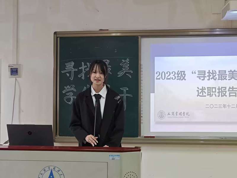 (通讯员 王茹钰 李芳欣 摄影 张夏菡)春华秋实,岁物丰成。为总结工商管理学院本科2023级2023-2024学年度上学期学生工作,促进工作经验的交流与学习,表彰先进、树立典型,12月17日下午,工商管理学院2023级新时代青年研习营在首义校区文润楼305教室举办2023级“寻找最美”学生骨干述职报告会。本次报告会由首旅管2301班王臻同学主持。