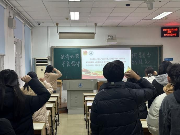 (通讯员 吴佳静 摄影 吴佳静)首经贸2303班于2023年12月18日在首义校区文泽楼107教室开展第三次主题团日活动。班级就学习习近平总书记向世界中国学大会-上海论坛致贺信、学习宪法等内容进行了学习研究。