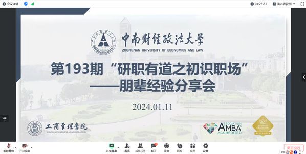(通讯员:郭倩桦)为落实落细就业优先政策,做实做细就业指导服务,拓展我院研究生就业视野、促进高质量就业,工商管理学院于2024年1月11日晚20:40在腾讯会议举办了第193期“研职有道之初识职场”——朋辈经验分享会,本次活动邀请到2018级资产评估校友曹忠亮、刘笑妍和于亚婷作主讲嘉宾,活动由我院研究生辅导员徐一菱老师主持,我院硕士研究生积极参与。
