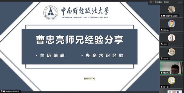 活动伊始,任职于招商南油的曹忠亮同学结合自身的求职经历,从求职简历制作和央企求职这两个方面分享自己的经验。曹忠亮同学谈到求职简历要注重展示个人经历并且避免个人评价。在分享完简历编辑技巧后,曹忠亮同学从规划、实践、知识这三个方面分享了央企求职的心得体会。他提出,在规划方面应细致分析职业选择、选取稳定的行业,充分把握职业机会;在实践方面应广泛投递简历,通过大量的面试锻炼表达能力;在知识方面需要关注企业报表等企业信息,以充实的管理知识提升自身的职业竞争力。