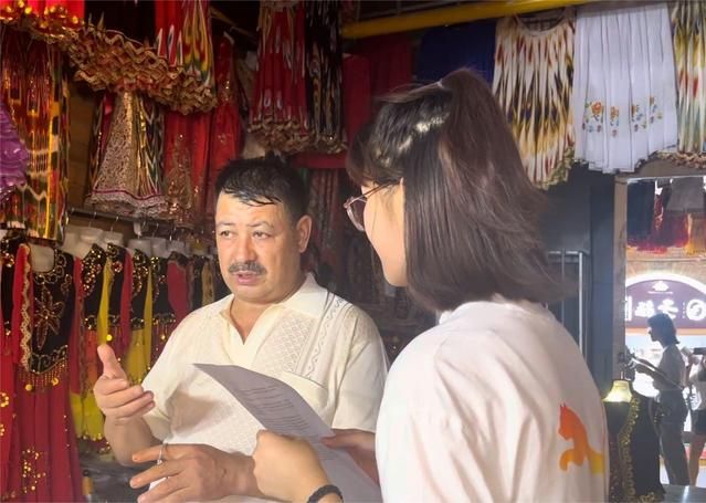 实践活动的目标之一是调查民族地区普通话普及程度,为此,团队成员通过线上、线下等形式,面向儿童、老年人、基层劳动者等特殊群体发放问卷,在乌鲁木齐国际大巴扎,实践团队开展随机街采、推普知识随机问答等。在伊犁哈萨克自治州昭苏县,团队成员借助2023中国新疆伊犁天马国际旅游节向当地居民、工作人员、游客宣传普及国家通用语言知识,并发放调查问卷、开展知识问答活动。此外,实践队深入学校、社区,扎实开展调研活动。