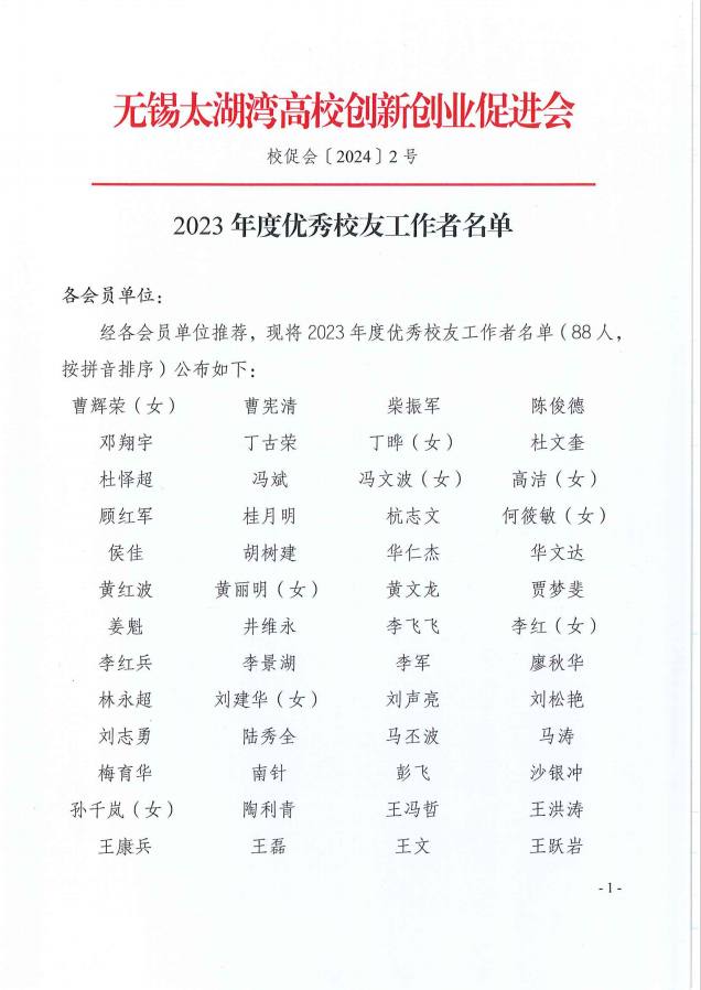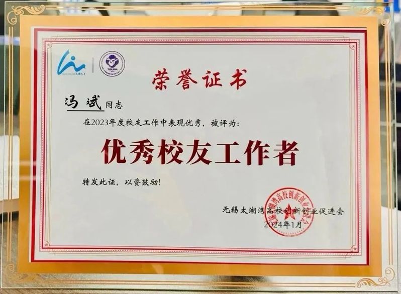 2023年,无锡校友经济发展迅速,各大高校在锡校友们心系无锡、情牵母校,在服务校友、宣传母校、助力校友经济发展工作等多方面尽心尽力、表现优秀。为树立榜样,表彰先进,进一步推动无锡校友力量发展,经各会员单位推荐,学校校友总会同意,太湖湾高校创新创业促进会汇总审议并公示,决定授予88位校友“优秀校友工作者”荣誉称号。我院2006级市场营销专业冯斌校友入选,获评2023年度无锡太湖湾高校创新创业促进会优秀校友工作者。