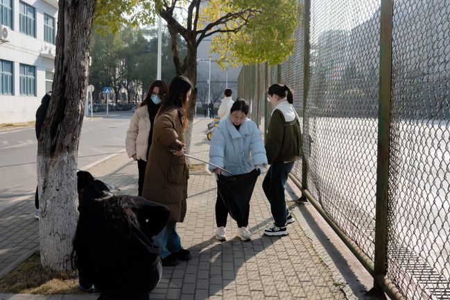 在劳动区域内,志愿者们积极分工合作,认真清洁负责区域的每一个角落。三月处的校园还十分寒冷,一些大块的冰尚未完全融化,湿漉漉的地面让清洁工作有些困难,但志愿者们仍然细心的进行着工作。经过志愿者们毫不懈怠地工作,学校环境变得更加整洁宜人。