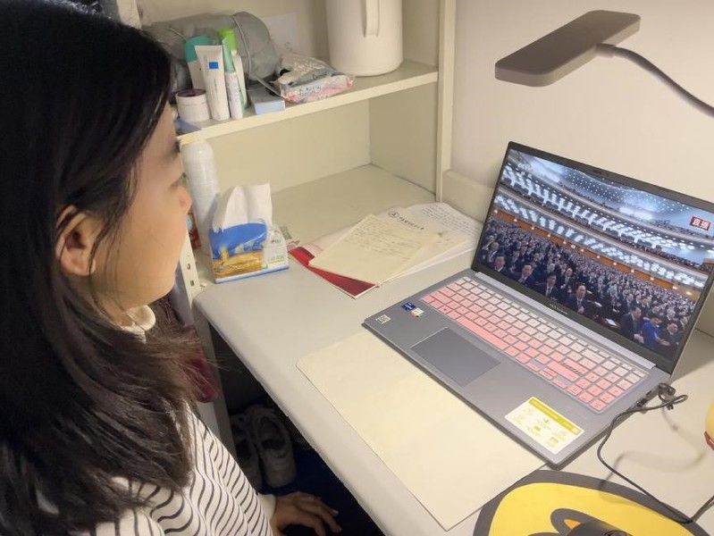 入党积极分子李宇翔谈到:“对于今年的主要预期目标和重点工作,我感到国家对于经济发展、就业、消费、住房、教育、医保和社会保障等领域的关注和投入,充分体现了以人民为中心的发展思想。特别是对未来产业的开辟、数字经济的推进以及对开放政策的进一步落实,都让我看到了国家不断推进改革开放和科技创新,加快构建新发展格局的决心和力度。”