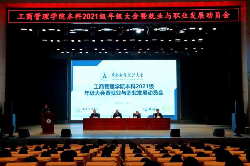 (通讯员 黄丽鸣 摄影 李娟宇 黄叶晴)为帮助本科2021级学生认清就业形势,掌握求职技能,树立正确的择业观、就业观,2024年3月7日下午,工商管理学院在南湖会堂召开本科2021级年级大会暨就业与职业发展动员会。校就业指导服务中心主任温习、工商管理学院院长吴海涛、工商管理学院党委书记余小朋、党委副书记尼加提·艾买提出席大会。本次会议特别邀请了启德教育武汉分公司经理涂攀老师、优士德教育王亚老师、万学教育海文考研湖北分校校长谭晓禹老师作为主讲嘉宾做就业、留学、考公、考研专题讲座。学院本科2021级辅导员、班级导师和全体学生参加本次会议。大会由工商管理学院本科2021级辅导员杨思琦老师主持。