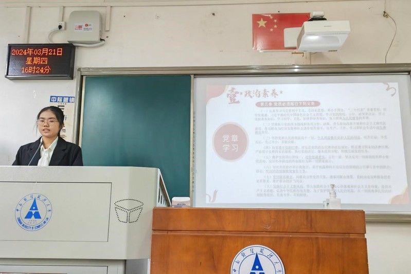 在团推优阶段,三位同学依次上台进行了团推优的答辩。文栋同学从对党的认识,入党动机,个人综合表现和未来展望四方面展开答辩,不仅明确了党的指导思想、党的组织建设和党员责任,并且受家庭教育和党员先锋模范精神的正向影响,以积极向上的态度不断向党组织靠拢。彭永慧同学在党章学习中提升政治素养,以生活和工作的经历表现出服务奉献的精神,同时在其他领域多样化拓展发展,不忘初心使命,不懈奋斗前进。浦玙凡同学表示,她一贯坚持以党员标准要求自己,定期撰写思想报告并及时反馈,重视理论知识的深度和广度,结合国家大事多方位思考,积极参加志愿活动并坚持为人民服务。