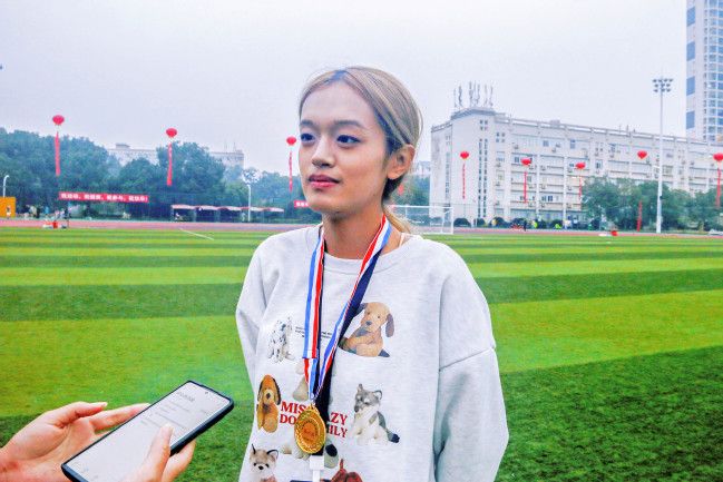 (学生记者 苏潇宇 摄影 洪逸霖)一托一扬一抛,身影潇洒自如,抛球干净利落。在女子实心球比赛中,沈妍邵首次参加比赛就表现不俗,斩获第三名。