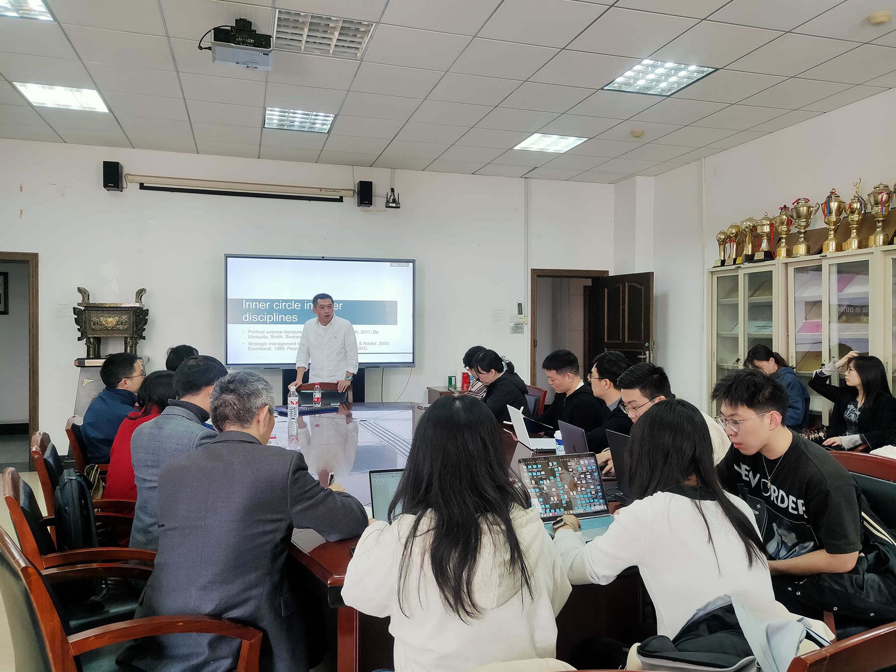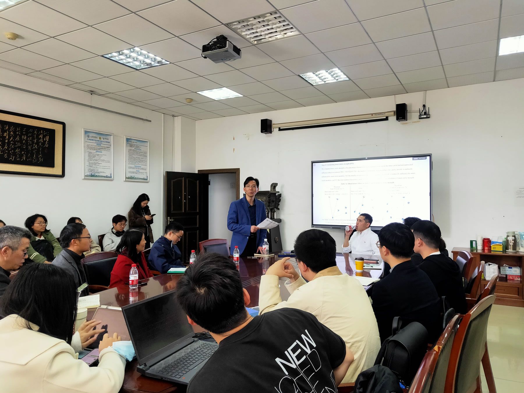 此次讲座黄教授汇报了正在开展的一个研究项目,主题为“圈层:工作团队的关系结构”。讲座由工商管理学院副院长费显政教授主持,