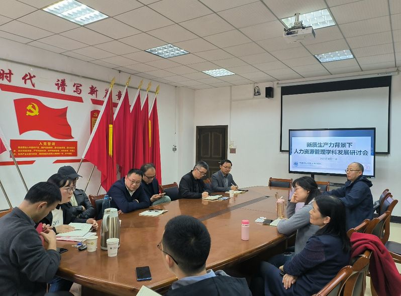 (通讯员:邢志杰) 4月11日下午2:00-5:00,人力资源管理系在文泉楼北307会议室召开新学期全系会议,讨论学科、专业和课程建设。根据习近平总书记关于新质生产力的讲话精神,这次会议定为“新质生产力背景下人力资源管理学科发展研讨会”。参会人员有赵琛徽教授、李伟教授、刘雪梅教授、刘文兴教授、卢亮副教授、刘容志副教授、安增科副教授、汤一鹏副教授、冯娇娇副教授、周新军博士、芦青博士、姜平博士、邢志杰博士,王淑红教授和郑耀洲副教授因有任务安排无法现场参会。