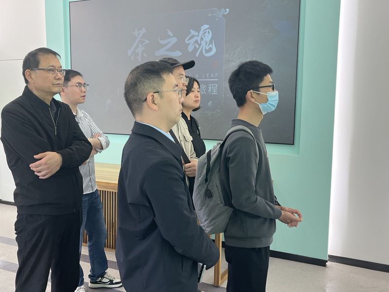 4月13日,调研团队前往信阳市文新茶叶加工园,考察茶叶自动化加工车间和茶叶博物馆,了解茶叶自动生产线和信阳市茶产业发展情况。信阳市是中国有代表性的茶叶产区之一,茶产业在当地经济发展中占有重要地位,目前已形成种植、采摘、加工、生产、销售和茶文化推广等全产业链条。文新茶叶加工园的工作人员向调研团队介绍了信阳毛尖传统制茶技艺原理和现代化智能化加工工艺流程。随后,调研团队与园区就信阳茶产业的市场规模、贸易方式、加工企业与种植户之间的合作关系以及茶学专业人才培养模式等问题进行了探讨,深入了解信阳市茶产业的发展优势和市场格局。