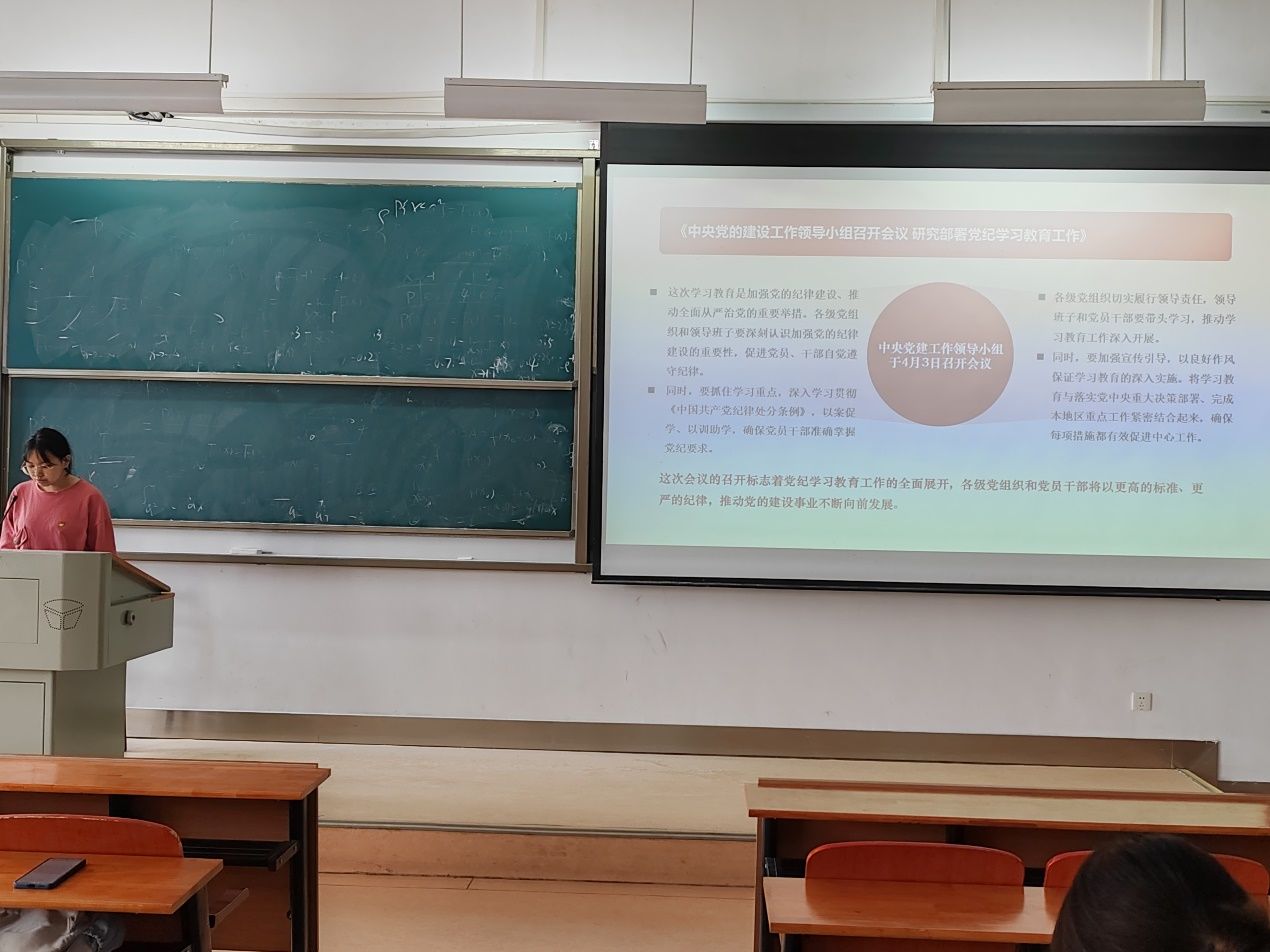 活动第六项,由王佳娜同志领学《中央党的建设工作领导小组召开会议 研究部署党纪学习教育工作》,本次会议强调这次学习教育是加强党的记录建设、推动全面从严治党的重要举措,王佳娜同志强调党员要主动遵守党的纪律、掌握党纪要求,时刻以更高的标准、更严的纪律反省自己。