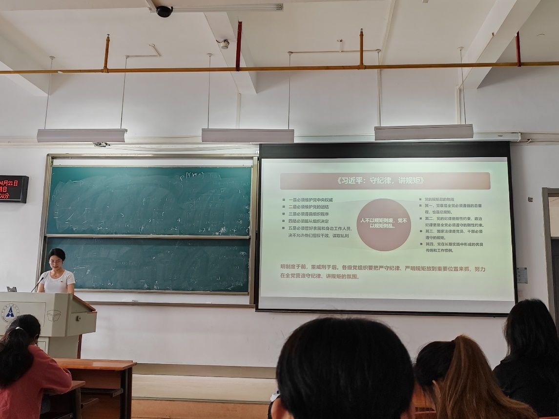 活动第二项,由李佳美同志领学《习近平:守纪律,讲规矩》,人不以规矩则废,党不以规矩则乱,李佳美同志重点介绍了党的规矩及遵守政治纪律和政治规矩的重点与意义,全体同学深入学习后,纷纷表示要长期坚持并自觉遵守党的行为规范和规则,在支部内营造守纪律、讲规矩的良好氛围。