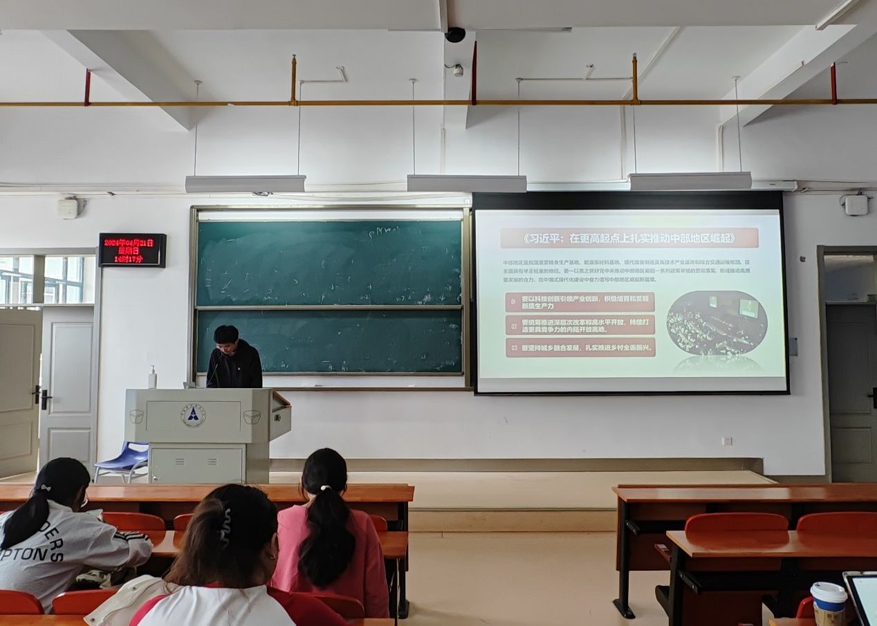 活动第四项,由朱芳圣同志领学《习近平:在更高起点上扎实推动中部地区崛起》,中部地区是我国重要粮食生产基地、能源原材料基地、现代装备制造及高技术产业基地和综合交通运输枢纽,在全国具有举足轻重的地位,朱芳圣同志从积极培育和发展新质生产力、持续打造更具竞争力的内陆开放高地、扎实推进乡村全面振兴三个方面阐述了习近平总书记重要讲话内容。
