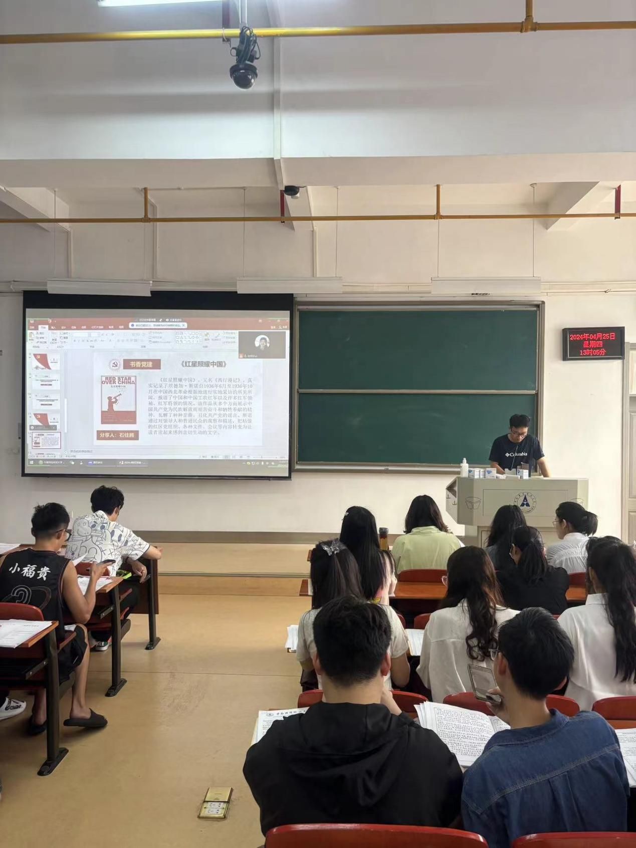 活动第四项,石佳腾同志分享《红星照耀中国》读书心得,石佳腾同志详细介绍了书中提及的中国工农红军以及许多红军将领的情况,让同学们更加深刻地了解了党的领导们的具体形象。