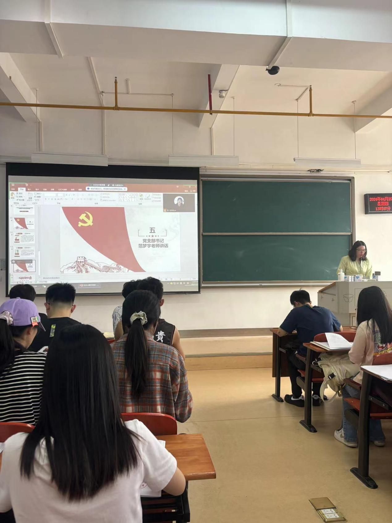 活动第五项,党支部书记范梦宇老师讲话。范梦宇老师强调了党员材料完整度的重要性,介绍了材料存档的相关事宜,告诫在场所有党员要在今后的学习生活中严格遵守党的纪律,做好先锋榜样的作用。