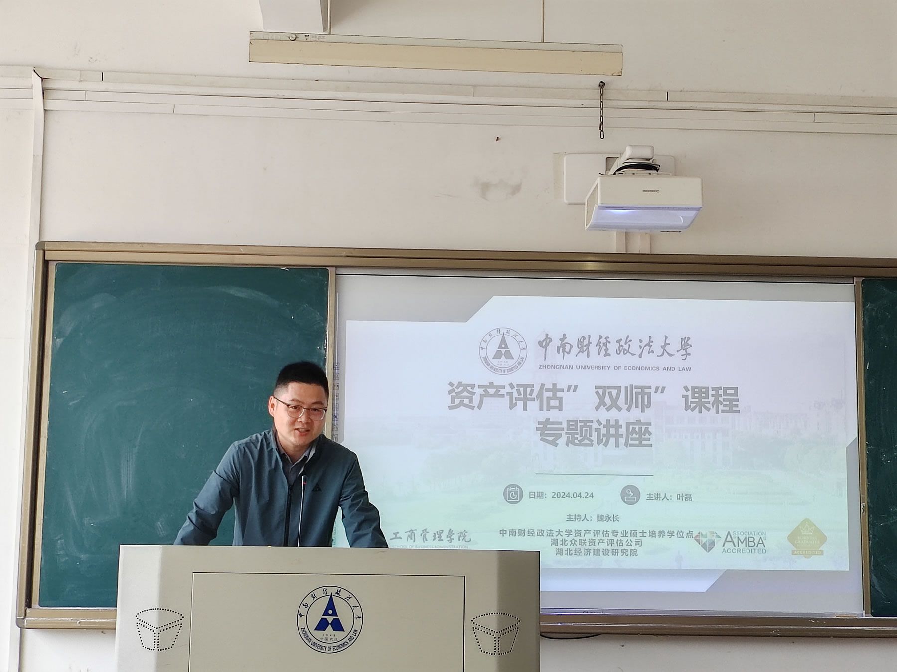 资产评估专业于2024年4月24日8:00-11:30在文添楼201教室举办了第六期主题为“上市公司涉及评估业务实务“双师”专题课程。此次专题课程由魏永长副教授主持,特邀湖北众联资产评估有限公司项目经理、资产评估师叶磊作为主讲人,本次课程旨在帮助同学们系统了解上市公司评估业务中的理论与实践难题。