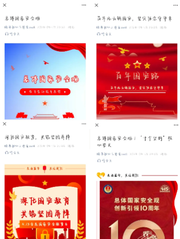 我院学子围绕国家安全教育日的主题,以推文的形式深入解读总体国家安全观,宣传国家安全成就,分享国家安全教育经验,增强维护国家安全的自觉性和行动力。
