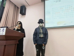 班会第一环节,“识套”—认识社交焦虑。主持人通过一个经典的人物形象——契诃夫笔下的《装在套子里的人》向大家引入社交焦虑的核心问题:怕暴露我们的焦虑状态;怕暴露我们不完美的外表;怕暴露我们有缺陷的性格;怕暴露我们不成熟的社交技能。模特张航同学装扮成“套子里的人”,生动展现了“套子”对我们的束缚。