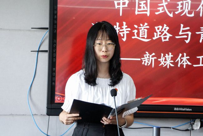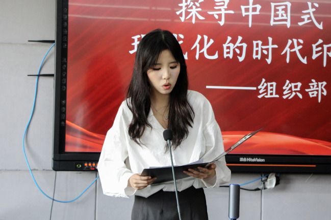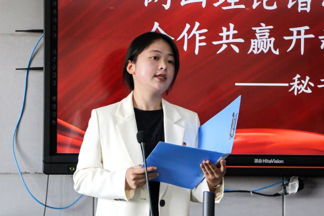 文艺部吴嘉莉以自身对中国特色社会主义的理解为引,倡议:青年是现代化建设的重要生力军,我们应该珍惜这个时代给予我们的机遇,共同努力,为国家现代化建设贡献青春力量。