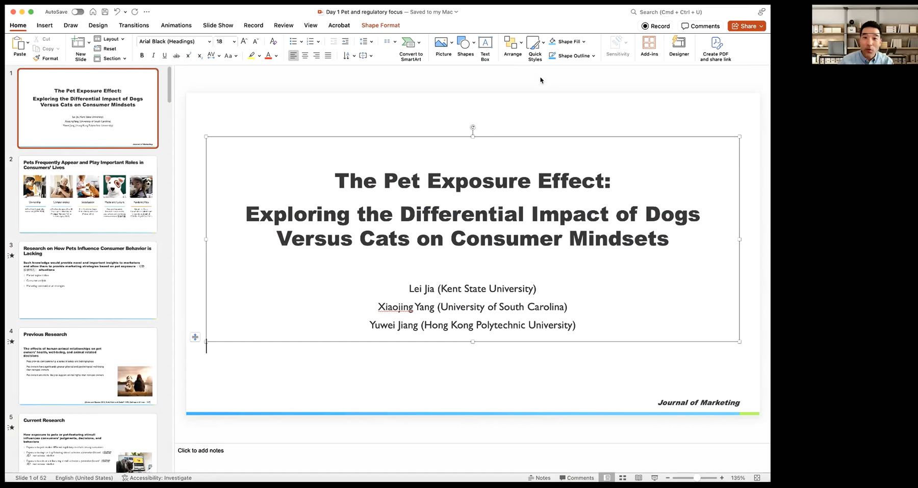 杨晓京教授,美国南卡罗来纳大学市场营销专业教授,米兰电竞·(中国区)工商管理学院文澜客座教授。在Marketing Science,Journal of Marketing Research,Journal of Consumer Research,Journal of the Academy of Marketing Science等营销国际一流期刊发表论文10多篇。同时,也担任Journal of Consumer Research,Journal of Marketing Research,Journal of Consumer Psychology,Journal of Advertising,Journal of Retailing等一流期刊的评审人。本次讲座中,杨晓京老师为我们分享了两篇有关宠物的研究,一篇是《The Pet Exposure Effect: Exploring the Differential Impact of Dogs Versus Cats on Consumer Mindsets》,一篇是