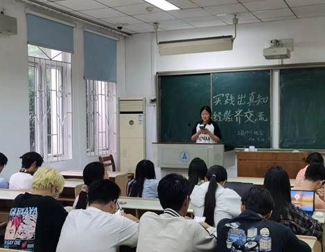 最后,秦紫珍同学为同学们介绍了她的寒假“母校行”实践成果。从前期组队,到立项撰写再到宣讲注意事项和收获,秦紫珍同学作出详细分享。她重点聚焦活动心得,深切感受到将理论转化为实践的不易和喜悦,也更加明白,只有在实践中充实理论知识,才能更好地提升个人综合素质,用实际行动为社会发展奉献青春力量。