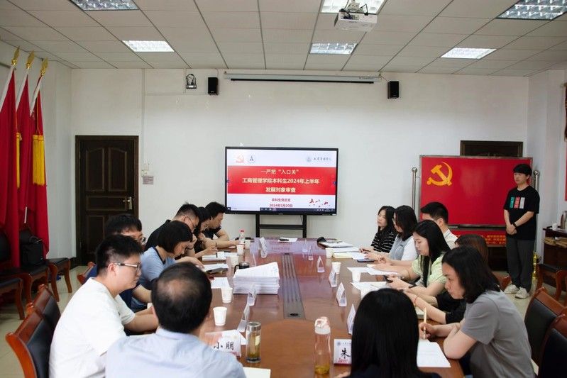 5月20日下午,工商管理学院本科生党总支在文泉楼北307会议室召开2024年上半年发展对象审查会,对本科生党总支确定的54名拟发展对象进行评议。工商管理学院党委书记余小朋、党委副书记、纪委书记兼行政副院长朱艳平出席会议,本科生各党支部书记、全体辅导员参加会议,会议由学办主任兼本科生党总支副书记水晶晶主持。