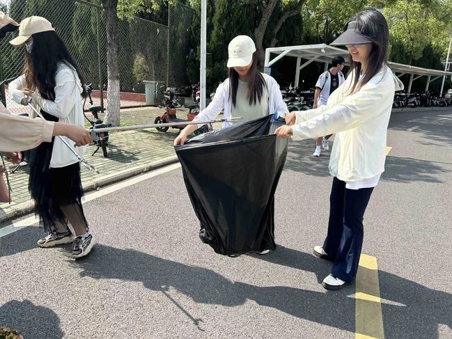经过一个多小时的辛勤劳动,志愿者们圆满完成了任务,为优化校园环境贡献了自己的一份力量。随后,志愿者们对垃圾进行了分类处理,生活权益部成员回收了劳动工具。志愿者们在中原楼和中南楼前合影留念。
