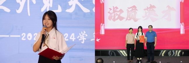 余小朋书记宣读《工商管理学院关于2023-2024学年年度综合表彰的决定》,并为获奖学生代表颁奖。