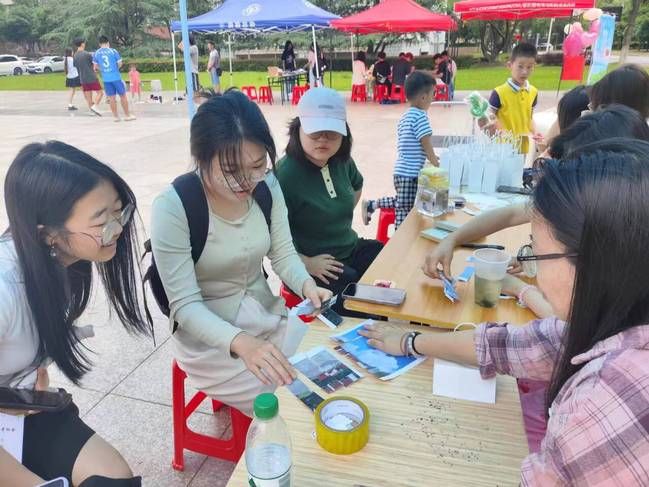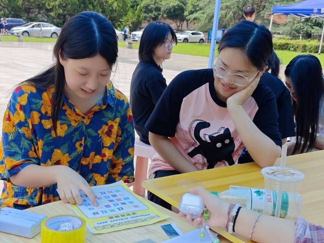 金乌升晓气,玉槛漾晨曦。活动当天一大早,志愿者们有条不紊地整理好活动物资,在摊位上满怀期待地等待同学们的到来。尽管天气炎热,但志愿者们的热情却并没有因此减弱,他们面带笑容接待每位前来玩游戏的同学。在进行首义照片拼图游戏时,参与者灵机一动,惊喜发现拼图内容正是他们身后的首义会堂,以此为参照,很快就完成了拼图,赢得游戏小礼品的同时捕捉到了首义的美景。在“正话反说”的趣味游戏中,同学们反复练习着“文汇楼、文泽楼……”等教学楼的名称,在轻松愉快的氛围中加深了对学校教学楼的独特印象。活动开展期间,现场人数众多,热闹非凡。落日熔金,暮云合璧。夕阳余晖映金辉,活动渐入尾声,志愿者们整理现场并合影留念,笑容满面地结束了充实而难忘的一天。