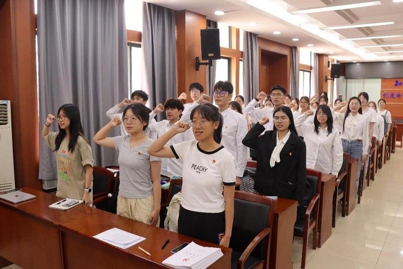(通讯员 傅婉清)5月29日中午,工商管理学院本科生2022级党支部于文泉北506会议室召开2024年下半年预备党员接收大会。工商管理学院2022级本科生党支部书记水晶晶老师,辅导员刘振兴老师、曾紫荣老师出席本次会议。