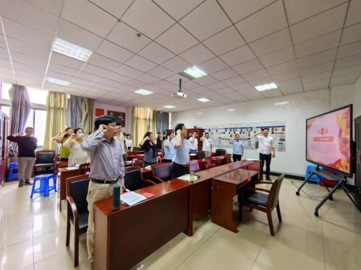 首先,行政党支部书记曾紫荣同志带领全体党员重温入党誓词,回首入党初心,牢记时代使命,永葆党员本色。