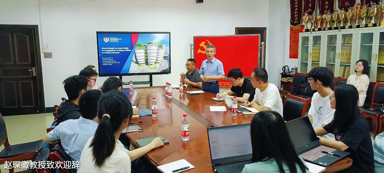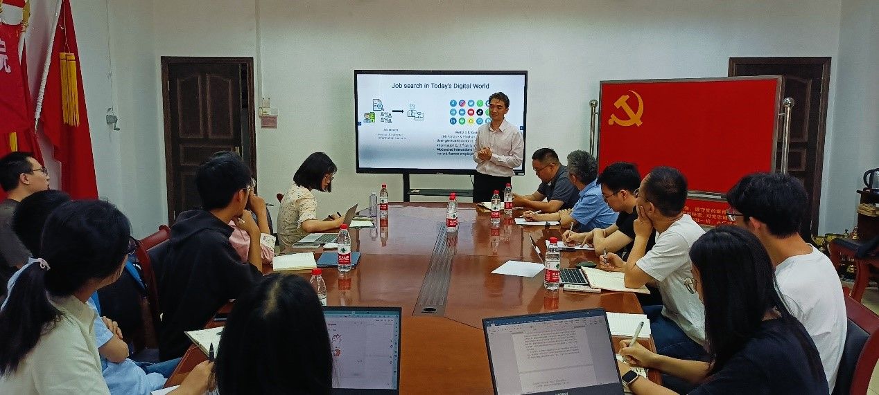 2024年6月8日上午8:30至12:00,工商管理学院人力资源管理系学术系列讲座在文泉楼北307教室顺利开展。本次讲座邀请到新加坡南洋理工大学领导、管理与组织系副教授、南洋理工大学学习研究与发展中心(CRADLE)联合主任Kang Yang Trevor Yu学者来我校进行以“社会媒体上的口碑:聘前结果的效价效应研究”为主题的讲座。讲座由人力资源管理系刘文兴教授主持,系主任赵琛徽教授代表人力资源管理系表示热烈欢迎。冯娇娇副教授、姜平老师、邢志杰老师,桂橙林老师,