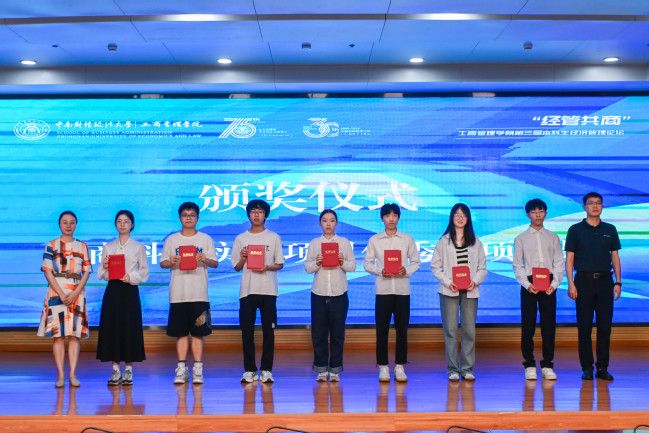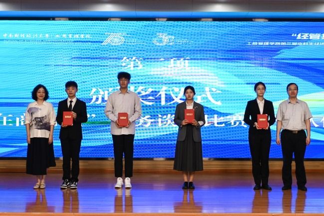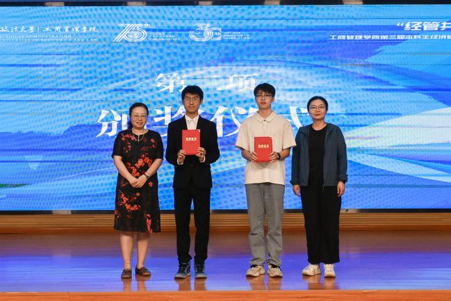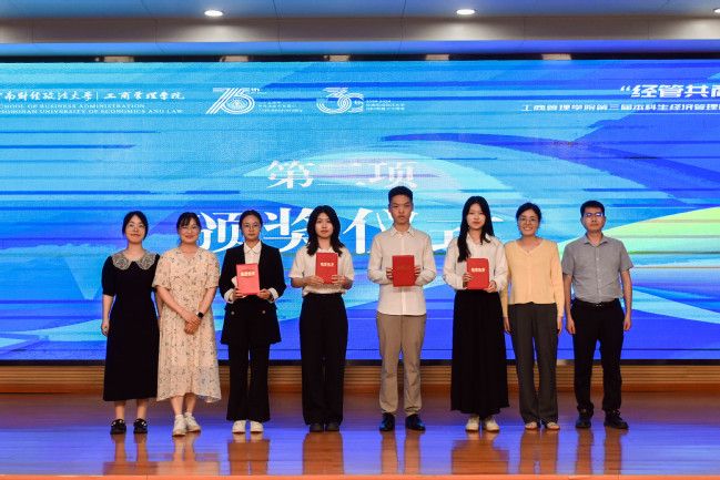 随后,工商管理学院党委书记余小朋、党委学生工作部副部长葛明、校团委副书记杨少同、教务部副部长柳正华为在工商管理学院第十届学术文化节中的商务谈判大赛优秀团队、法商科研实践项目优秀结项成果获奖选手颁奖,激励商科青年探索经管学术前沿,激发了同学们在科研创新上的热情活力。