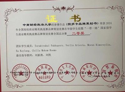 202467日下午,2024年全国高校商业精英挑战赛品牌策划竞赛在华留学生组暨一带一路国家留学生商业精英挑战赛品牌策划竞赛全国总决赛在北京圆满落幕。在刘新燕副教授和刘凯副教授的带领下,我院泰国籍本科生 (TORAKTRAKUL PAKKAPORN)张秀雯、印度尼西亚籍本科生 (ARIESTA VERLIN) 黄菲琳、柬埔寨籍本科生 (MOEUN KIMSREYLIN)李金兰,和经济学院柬埔寨籍本科生(EA KUYLANG)杨桂兰组成的参赛队伍获得大赛二等奖。