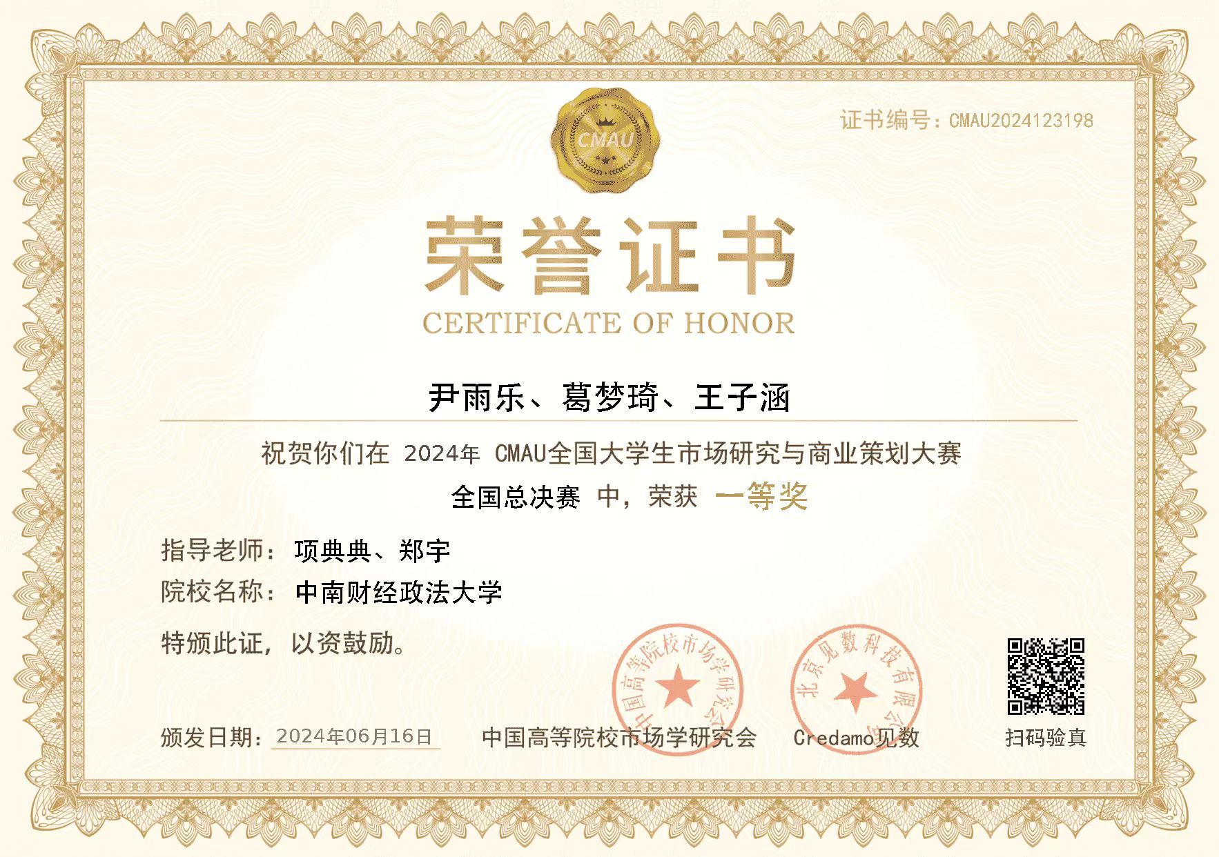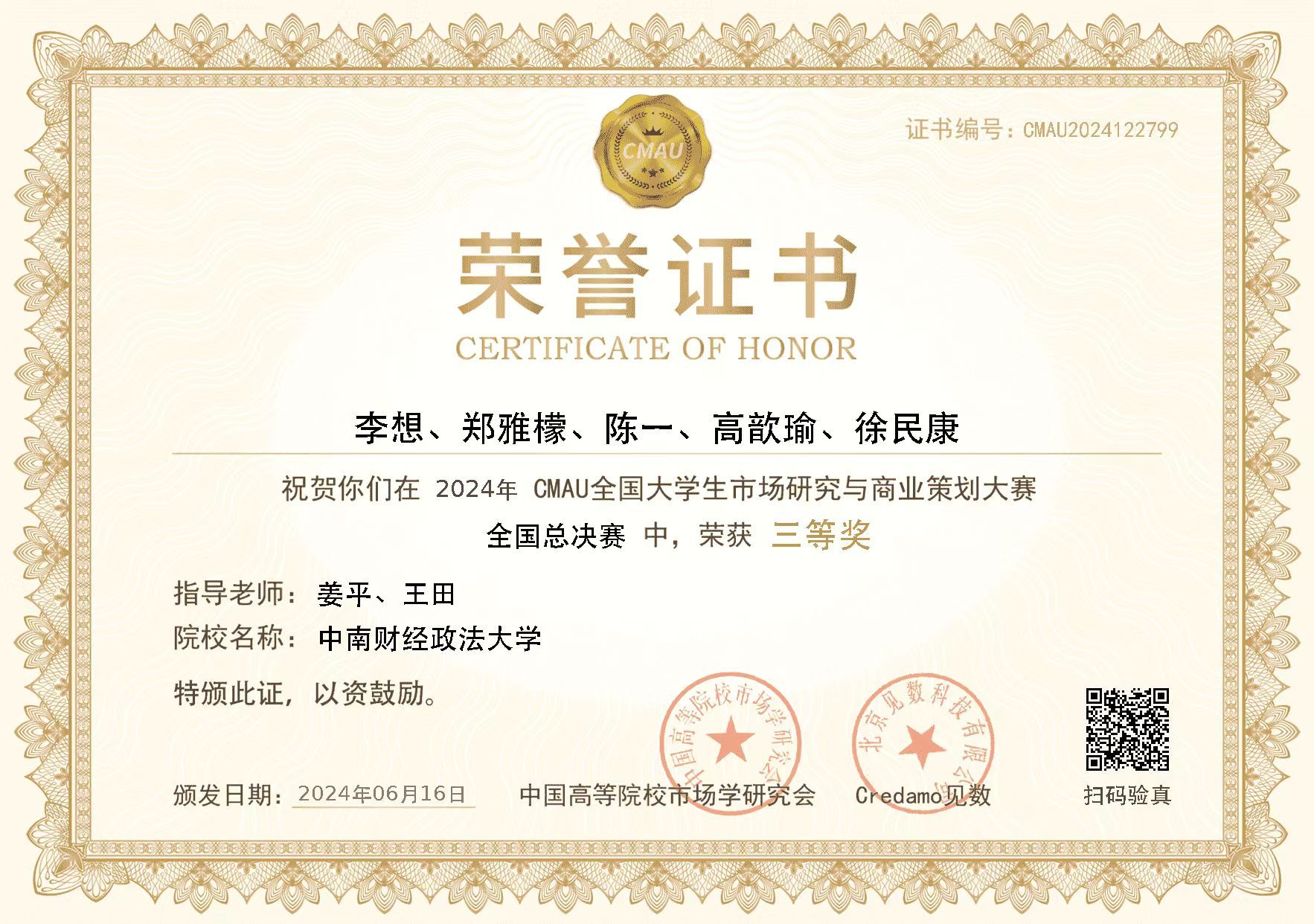 6月16日,第三届CMAU全国大学生市场研究与商业策划大赛全国总决赛落下帷幕,我院师生在本届CMAU全国大学生市场研究与商业策划大赛中表现优异,学校获得大赛年度特别贡献奖和最佳院校组织奖、四位指导老师获得“优秀指导教师”荣誉,两支队伍获得全国一等奖、两支队伍获得全国三等奖。