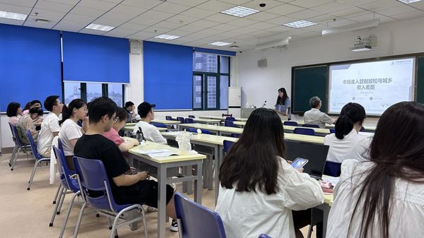 主讲人分享结束后,吴振球老师和同学们对于文章的研究思路、数据选取、模型构建、结果检验、作用机制等问题进行了讨论,同学们对此有了更清晰的认识,同时对缩小城乡收入差距问题有了进一步的了解。