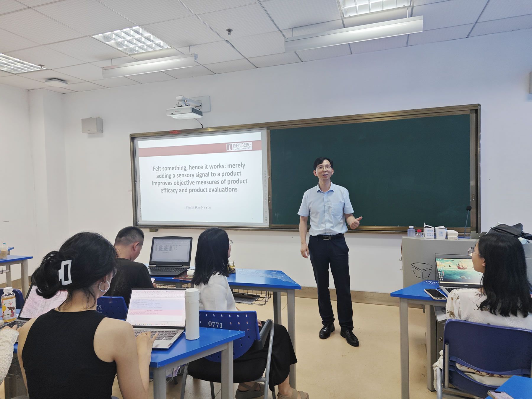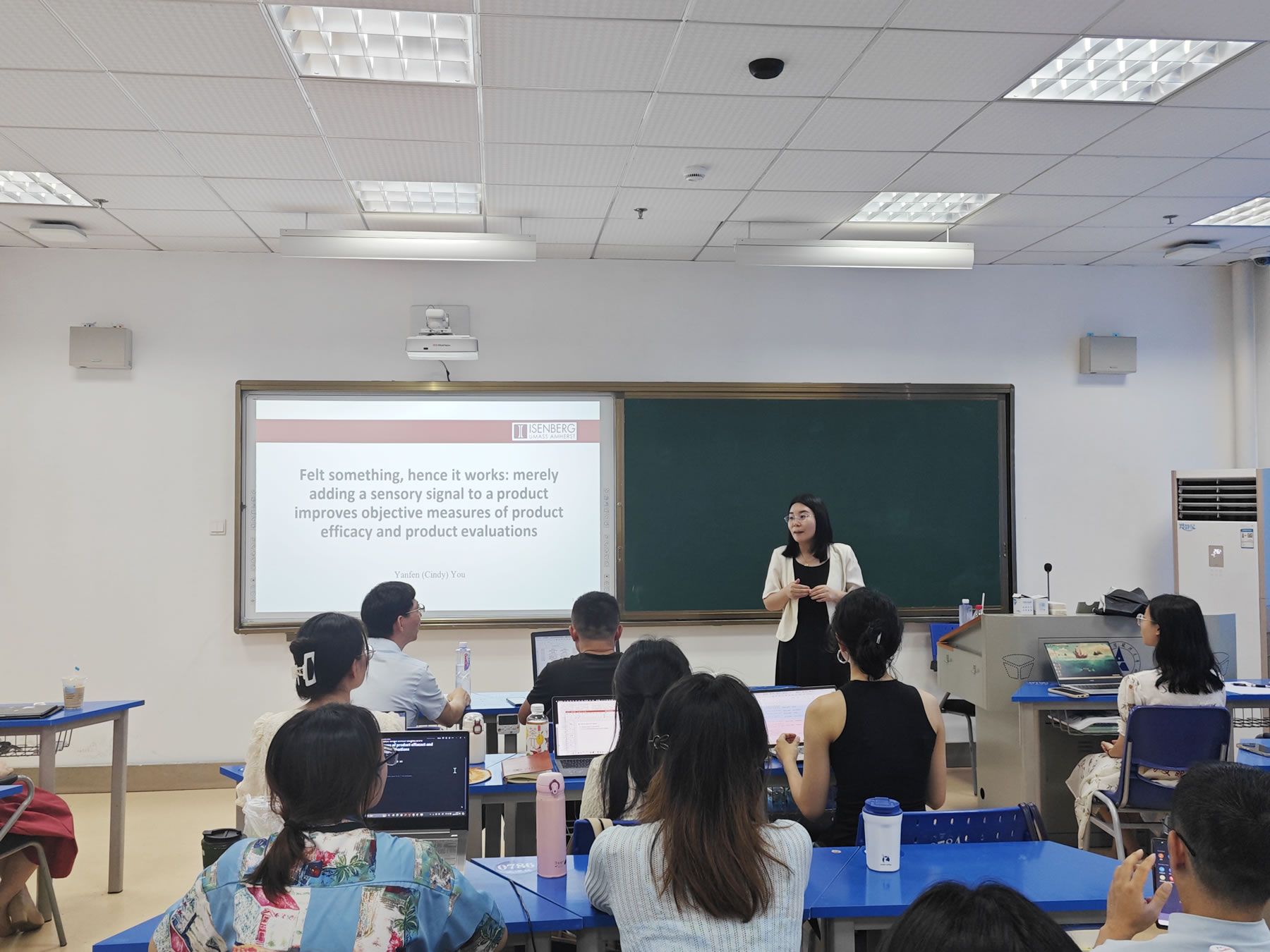 (通讯员:董林康)2024年6月25日下午三点,工商管理学院“营销管理系2024年海外名师授课系列”暨营销管理系学术系列讲座第137期在文澴楼132教室举办。本次讲座邀请了美国麻省大学阿默斯特分校的市场营销专业助理教授游艳芬(Cindy)为主讲嘉宾,与我们分享消费者研究的热点问题。营销管理系费显政教授主持讲座,各院校、院系的老师和同学们积极参与本次活动。