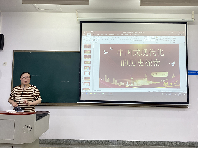 马克思主义学院尹倩副教授为培训班学员讲授第四课。她以《中国式现代化的探索之路》为题,分别从时代的挑战与课题、被动卷入到主动追寻现代化、农业现代化工业化到四个现代化、从中国式现代化道路到中国式现代化这四个方面介绍了中国式现代化的探索之路。她指出,近代中国历史的主题是现代化,面临的两大历史任务分别是求得民族独立和人民解放、实现国家繁荣富强和人民共同富裕。