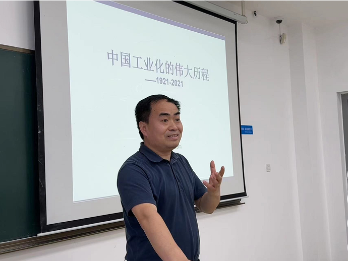 工商管理学院副院长石军伟教授以《中国工业化的伟大历程》为题讲授第二课。他先从“无农不稳、无商不活、无工不富”切入,讲述工业化的重要性,即工业化是实现共同富裕的基本途径。党的十八大以来,我国工业体系愈加健全,产业结构持续优化,数字化绿色化转型成效明显,制造业规模连续13年居世界首位,中国工业化成就举世瞩目。石院长在课程互动中提到,新型工业化的首次提出时间为2002年11月,旨在以信息化带动工业化、以工业化促进信息化,而当前,新型工业化成为发展新质生产力的主要着力点,新兴产业的发展与壮大推动着“新型工业化”的实现。而后,石院长详细讲解了中国工业化的伟大历史征程。建党一百年来,党领导的工业化经历了新民主主义革命时期的思考探索阶段、建成工业体系阶段、建设工业大国阶段、建设世界工业强国四个时期,他强调,工业是国民经济的主导,工业化是社会生产力大发展的显著标志,工业史是党史的重要组成部分,工业的发展与变化离不开中国党中央的领导。在中国共产党的坚强领导下,我国坚持走中国特色新型工业化道路,极大增强了我国的综合国力、国防实力和国际竞争力,显著提高了人民群众生活质量和水平,为我国实现从站起来、富起来到强起来的历史性飞跃提供了强有力支撑。实践证明,党的领导始终是走中国特色新型工业化道路的根本保证。