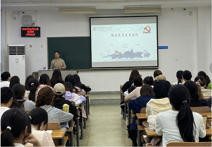 工商管理学院党委组织员刘淑君老师为入党积极分子讲授第三课——《解读党员发展流程》。课上刘老师主要以《中国共产党发展党员工作细则》等文件为依据,结合在党建和日常工作中常见的问题及薄弱环节,讲述了发展党员的工作原则和基本要求,并重点围绕申请入党、入党积极分子的确定和培养教育、发展对象的确定和考察、预备党员的接收、预备党员的教育考察和转正等5个阶段进行详细讲解。做好发展党员工作,是保持党的先进性纯洁性、落实从严治党方针和凝聚中国力量实现“两个一百年”奋斗目标、实现中华民族伟大复兴中国梦的现实需要。在建设中国特色社会主义事业中,不断涌现出来的认真贯彻执行党的基本路线、献身改革开放和现代化建设事业、诚心诚意为人民谋利益、带领群众为经济发展和社会进步做出实绩的先进分子,是党组织接收新党员的源泉。党组织只有经常不断地对这些先进分子进行教育和培养,在他们提出入党要求并且具备党员条件时,及时把他们吸收到党内来,才能不断壮大党员队伍,改善党员队伍结构,提高党员队伍素质,保持党员队伍生机活力,担负起新的历史使命。