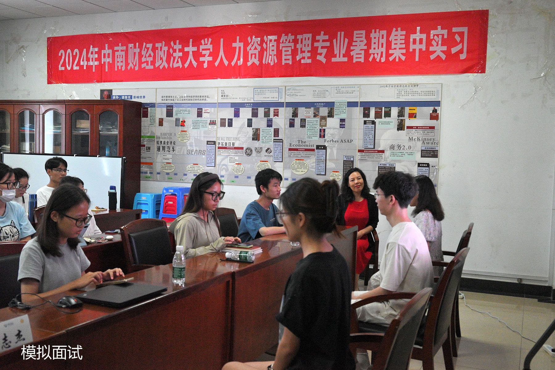 最后,方总监组织开展了一场以人力资源管理岗为招聘岗位的模拟面试,在这个过程中,两组需确定3位面试官与3位面试者参与本次面试。在二十分钟的紧张准备后,面试正式开始。在面试过程中,无论是求职者还是面试官都积极运用自己在本次讲座中学到的知识,为大家呈现了一场精彩的面试。面试结束后,方总监针对实习生们的面试进行了指导,并给予了高度点评,本次讲座顺利结束。