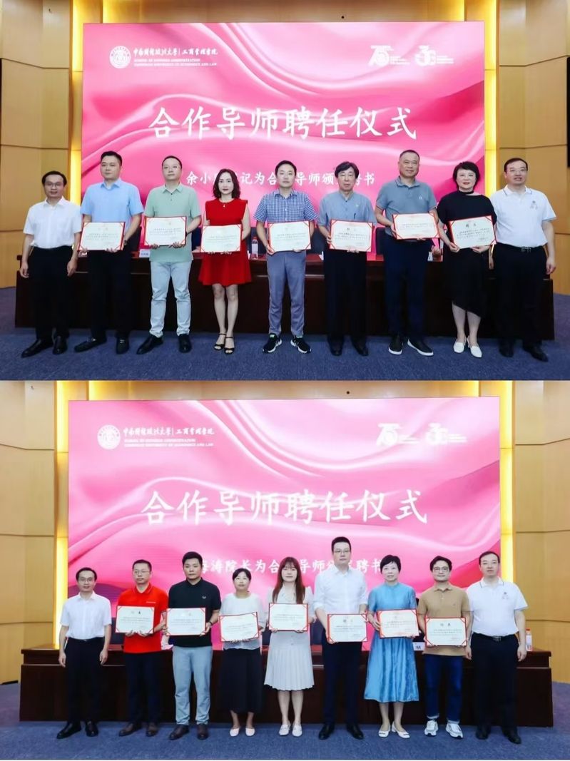 开学典礼上还举行了企业合作导师聘任仪式。吴海涛、余小朋为现场的14位企业合作导师代表颁发了聘书,感谢企业合作导师对学院长期以来的关心和支持,并希望企业合作导师们参与学生指导,为学校和学院发展建言献策。