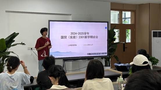 (通讯员 严梦晔)2024年9月10日,工商管理学院国贸(实验)2301班在南湖校区文瀚楼东601教室举行新学期第一次主题班会活动。首国贸(实验)2301班全体同学参加活本,次活动由班长余文欣主持。