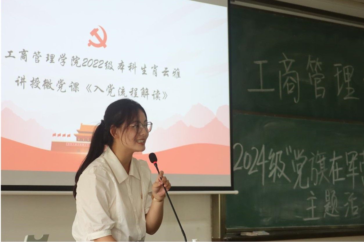 2022级本科生党支部中共预备党员肖云雅向大家详细介绍了入党流程的五个阶段——申请入党初期培养阶段、入党积极分子确定和培养阶段、发展对象的确定和考察阶段、预备党员接收阶段、预备党员考察和转正阶段,她鼓励同学们全面了解入党程序,积极向党组织靠拢,不断锤炼自我,提升党性修养。