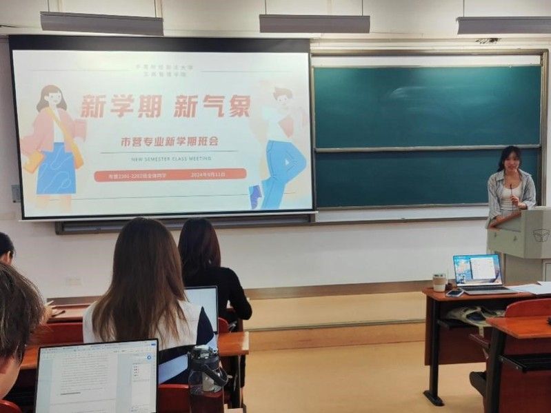 (记者何天宇)奋楫扬帆,蓄势前行。新的学期,是一个新的起点,在2024年9月11日,市营专业的同学们齐聚南附202,开展了以“启航新征程,逐梦向未来”为主题的班会,本次班会由市营2202班班长张昕宇同学主持,班导师马瑞婧、辅导员水晶晶老师参加。班会共包括新学期班级事务、安全教育、暑期社会实践分享、学情分析、政治理论学习,老师寄语六个部分。