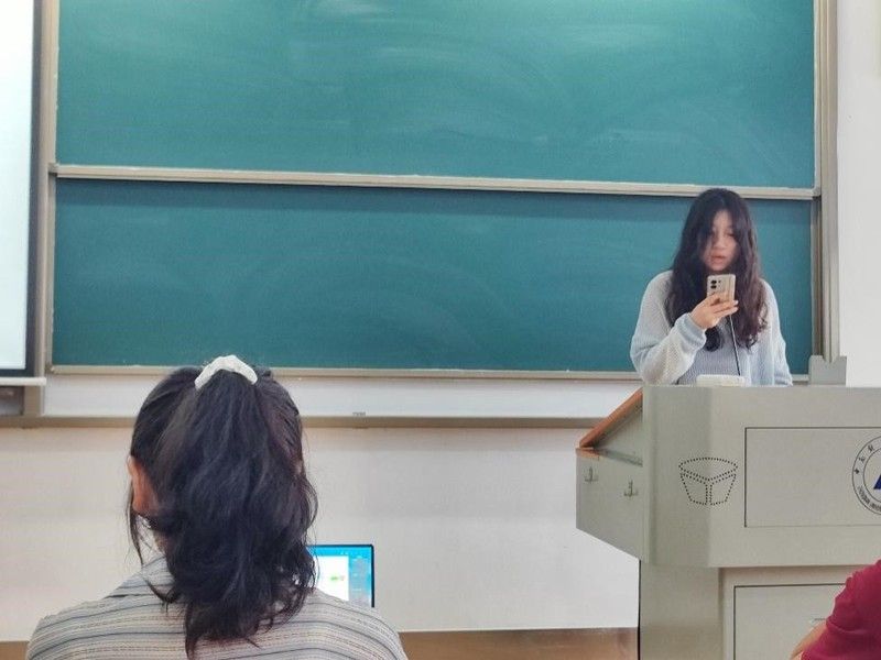 在第三个部分,苏思盈同学结合自己的亲身经历向大家分享了暑期社会实践活动。她参与的社会实践活动是习近平文化思想指导下古村落的文化传承与保护开发的调查研究,她从项目背景,项目方案设计,实践成果,结论与建议四个方面详细向大家展示了她参加的社会实践活动。苏思盈同学的分享让同学们对古村落文化传承与保护开发有了更深入的了解。市营2202班的高士琴同学分享了自己在中建三局的实习经历,鼓励同学们大胆尝试,将所学运用到具体实践中,在实践中不断增长才干。