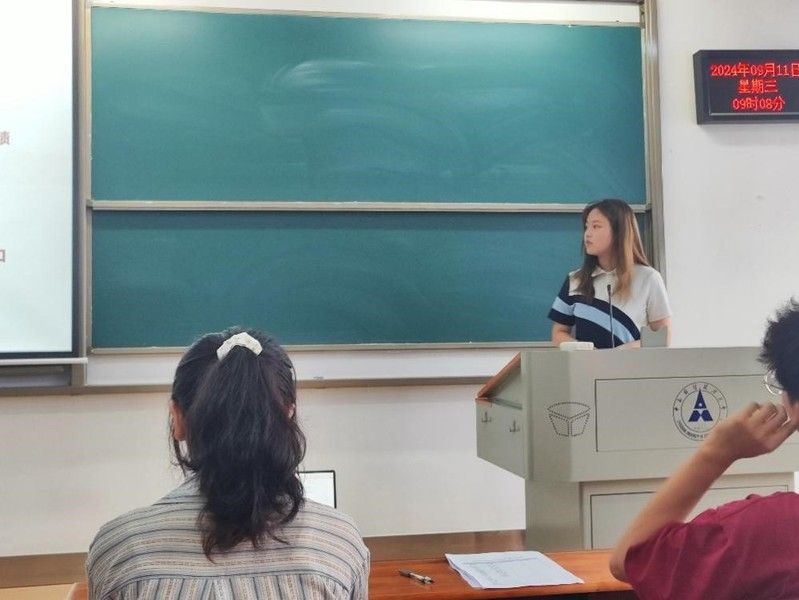 在第一个部分,市营2201班班长苏思盈同学向大家讲述了新学期的班级事务。她列出了从2024年9月到2025年1月学院的一些活动,着重强调了博文杯和大创申报的时间点,对于同学们来说不是很熟悉的活动,苏思盈同学告诉同学们可以从一些公众号和官网上搜集相关活动信息。
